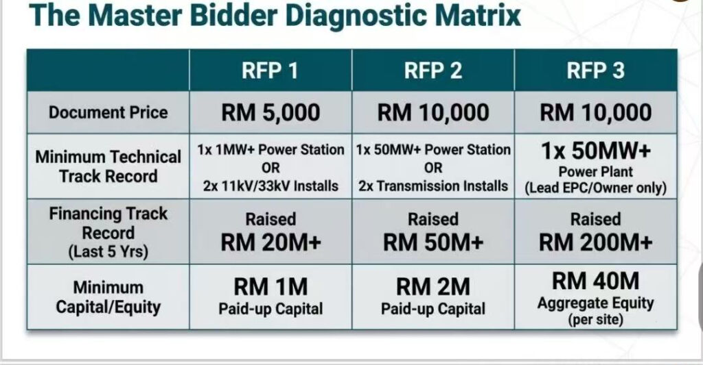 - Sabah entity must act as lead (BESS)