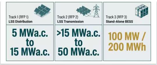 - Track 3 (RFP3): Standalone BESS (100MW / 200MWh per site)